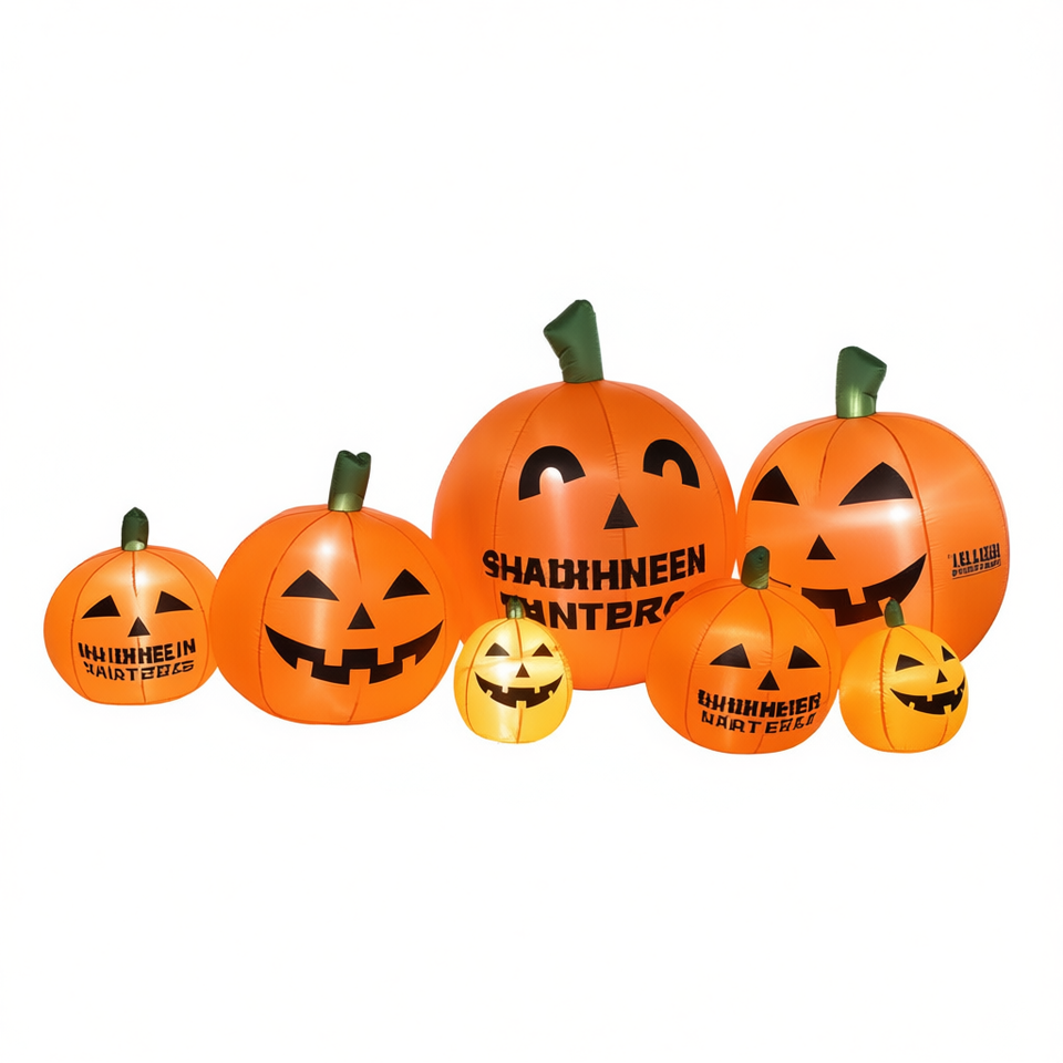 Decorazioni gonfiabili di Halloween a forma di zucca per esterni, set da 7 pezzi in PVC con illuminazione per feste.