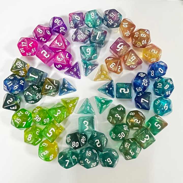 Set da 7 Pezzi di Nuovi Dadi Acrilici con Carattere Trick per D&D, Bicolore Camaleonte per Giochi di Rischio, Numeri Multilaterali per Giochi di Ruolo D&D