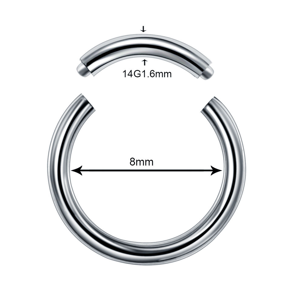 Anello al naso Color argento da 8/10mm 14g e 16g anello a segmenti senza cuciture anello a cerchio al naso in titanio gioielli Piercing per il corpo aperto