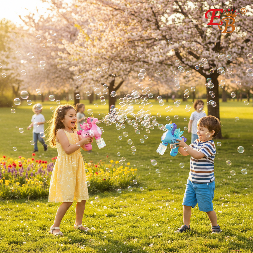 8.4\"X7.2\" Electric Unicorn Bubble Gun with 48PCS/C Bubble Water Unicorno Bubble Machine