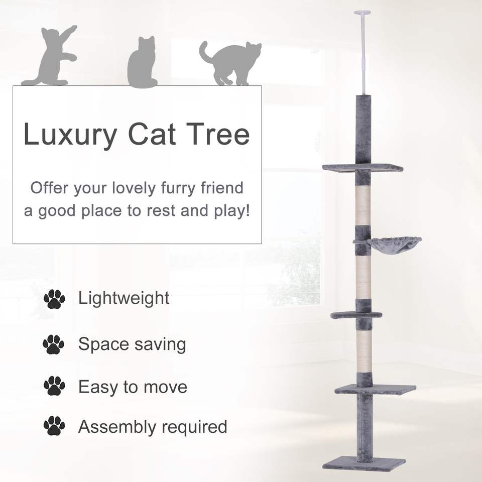 Torre per Gatti Verticale da Pavimento a Soffitto, 8,5 Piedi, Altezza Regolabile a 5 Livelli, Grigia