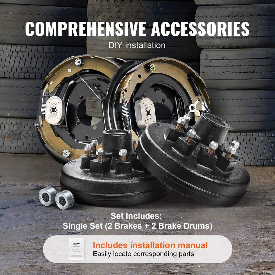 8 6.5\" B.C. 12\" X 2\" Electric Brakes Self-Adjusting Trailer Brake Assembly 7000 Lbs Axle 5-Hole Mounting Backing Brake Drum