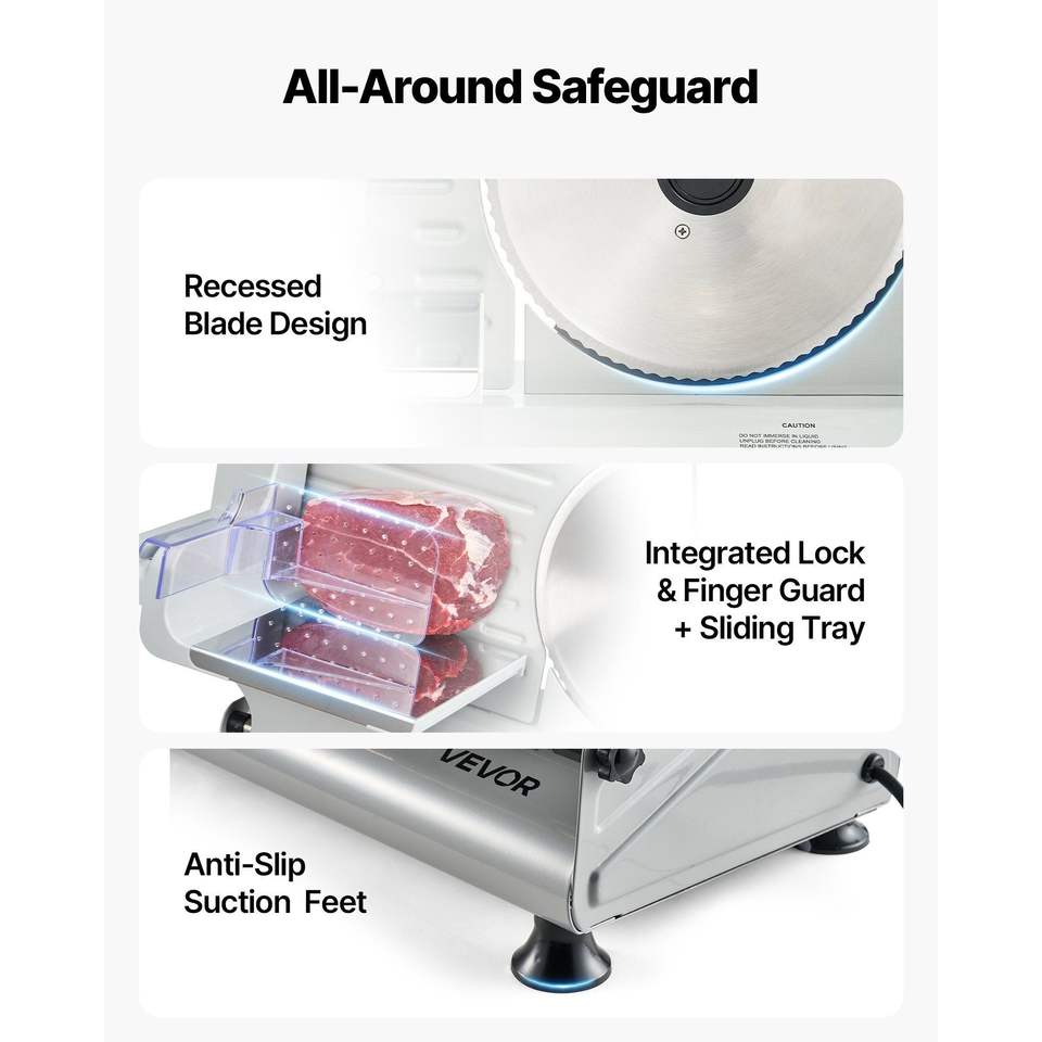 Affettatrice Elettrica da 8,6 Pollici 200W Certificata ETL per Uso Domestico con Due Lame in Acciaio SUS420 e Spessore Regolabile 0-0,6 Pollici per Carne