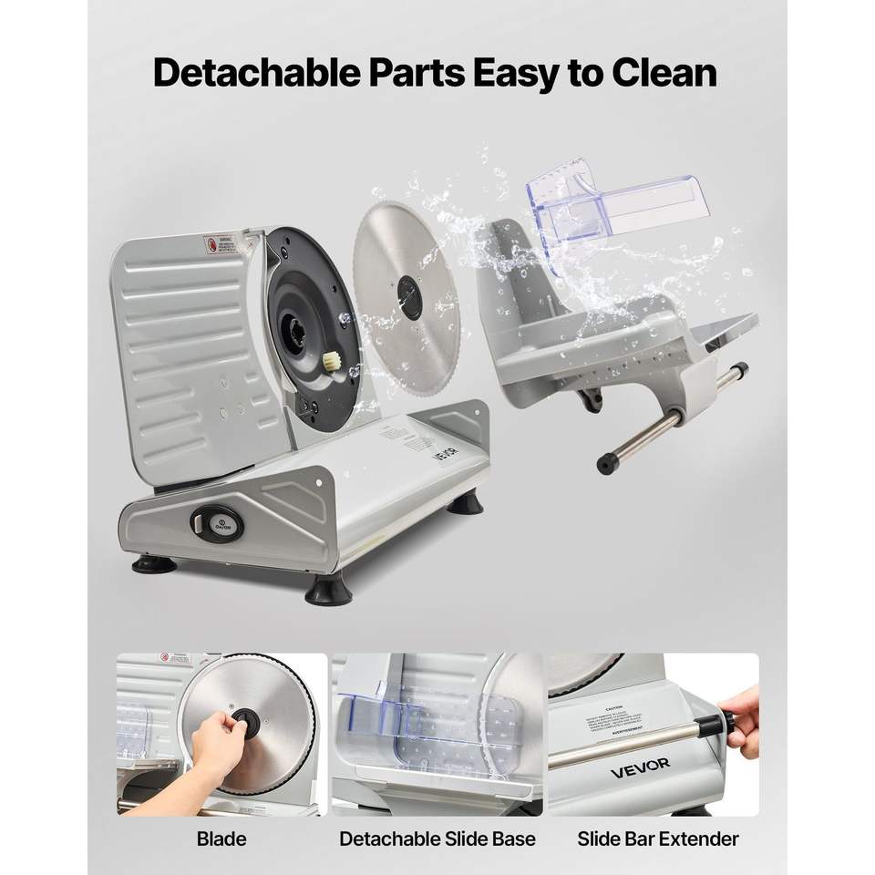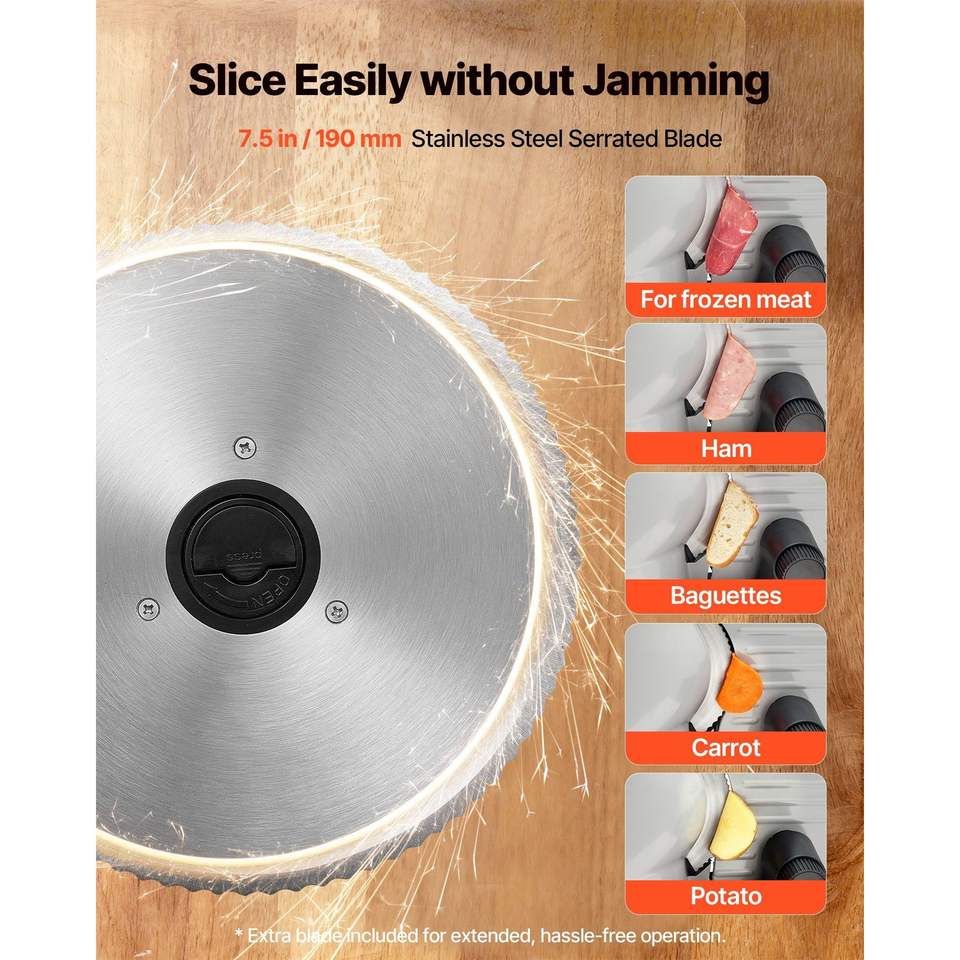 Affettatrice Elettrica per Salumi da 8,6 Pollici 200W Certificata ETL, Tritacarne e Affettatrice con Due Lame SUS420, Spessore Regolabile da 0 a 0,6 Pollici