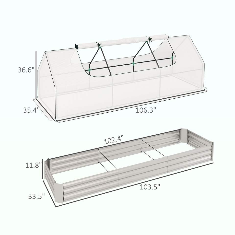 8.6 X 3 X 1ft White Mini Greenhouse Galvanized Raised Garden Bed Cover for Herbs Vegetables Small Patio or Balcony Garden Bed