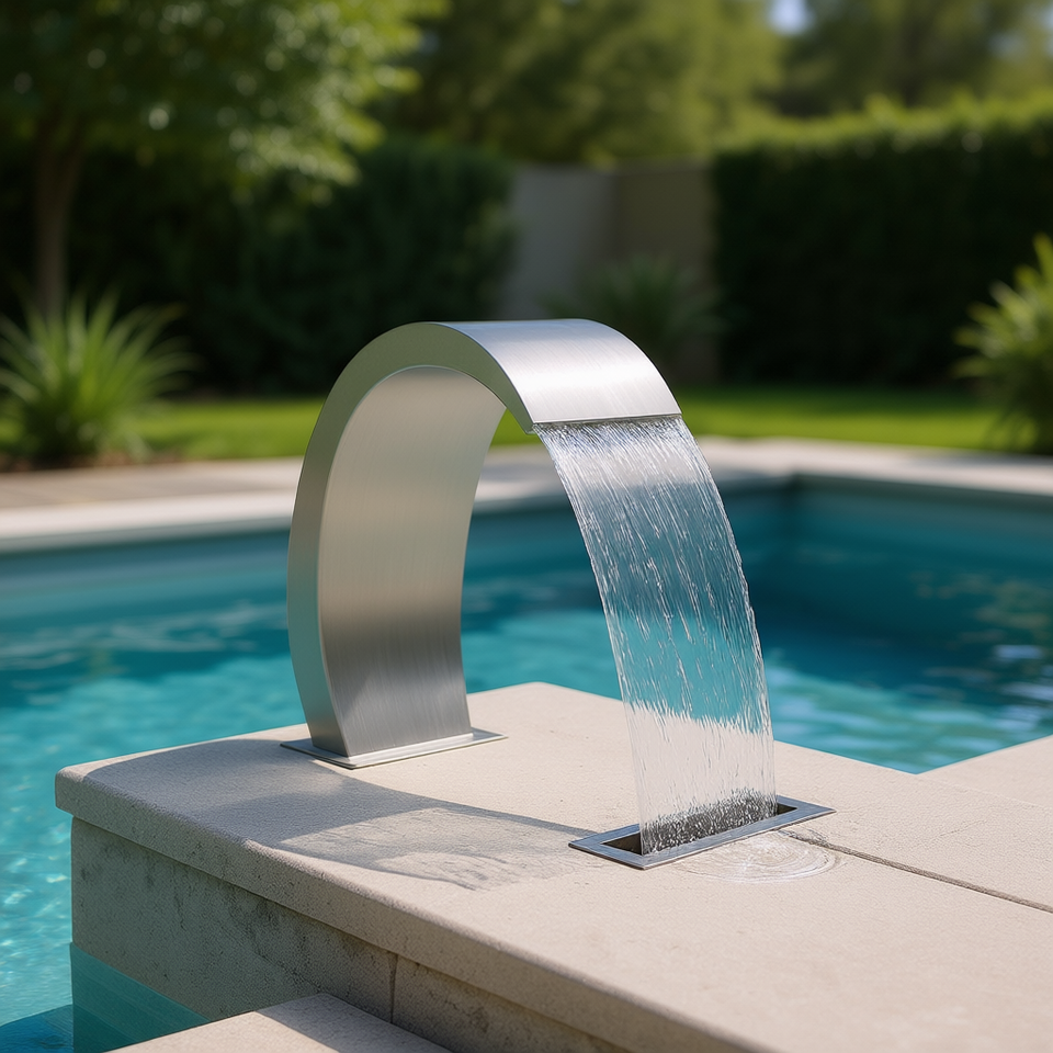 Fontana per Piscina in Acciaio Inox 304, 8.7x23.6x27.6 Pollici, Design Contemporaneo, Resistente, Elemento Acquatico per Esterni