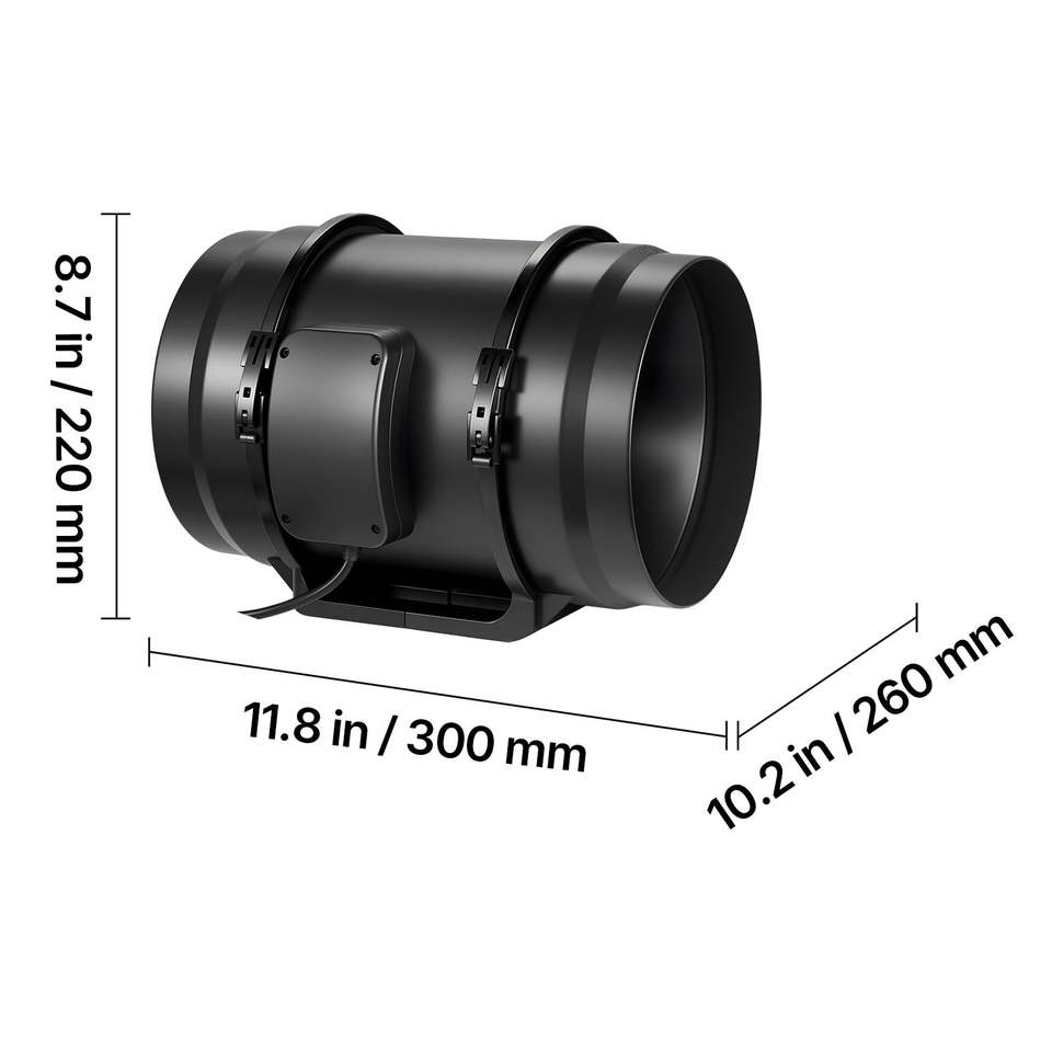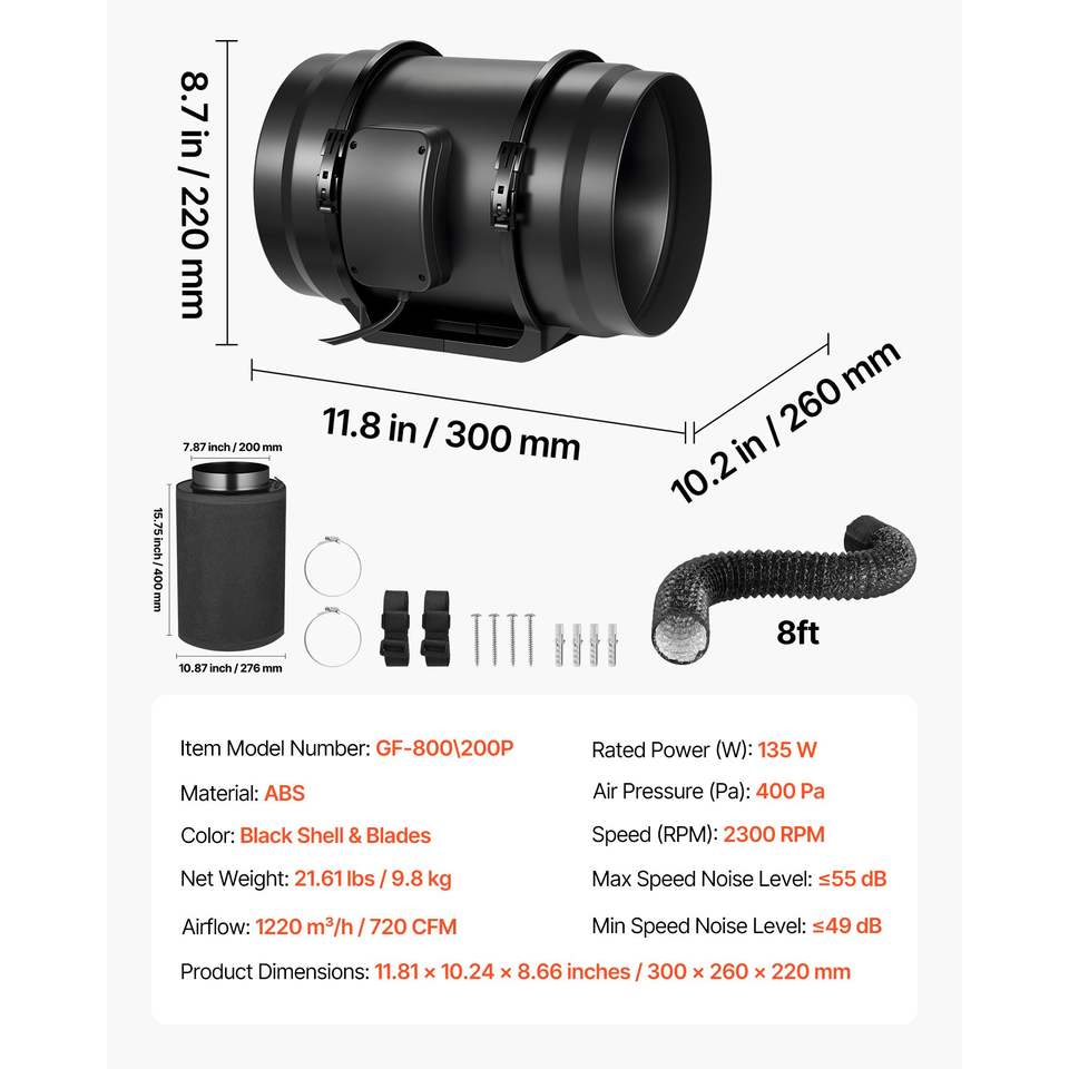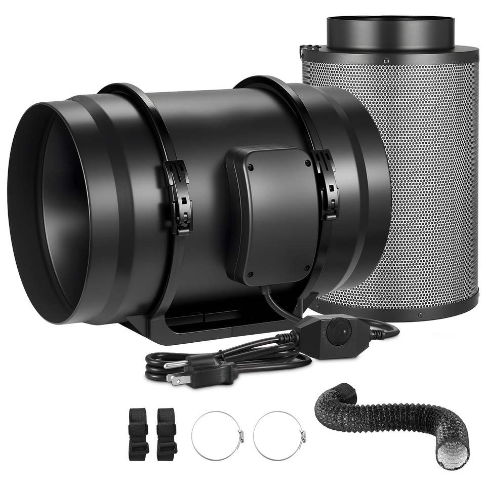 Kit di filtrazione dell'aria da 8 pollici 180 CFM con ventola in linea, regolatore di velocità e filtro a carboni attivi per sistemi di ventilazione e aspirazione