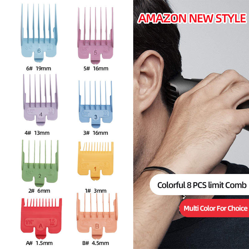 Set di 8 Pettini Guida Professionali Colorati per Tagliacapelli, Compatibili con Tutti i Modelli