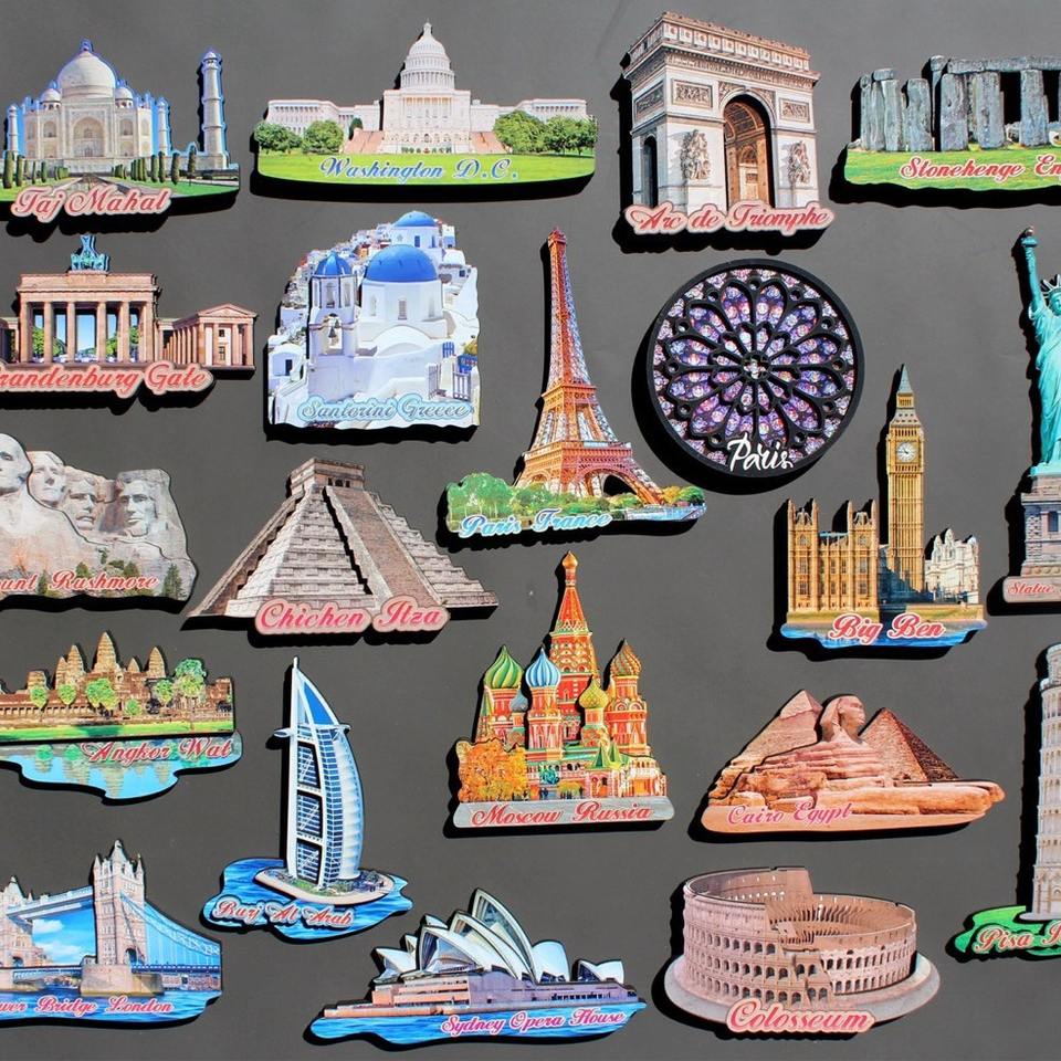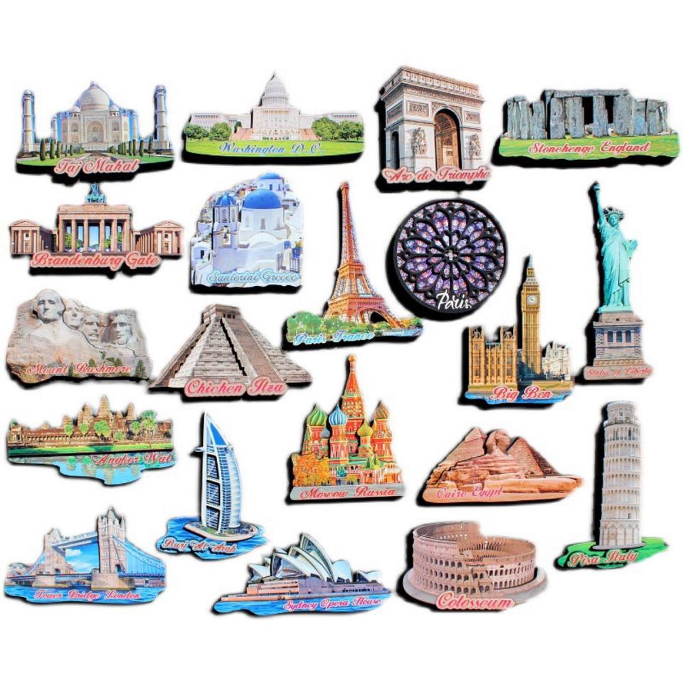 Set di 8 Magneti da Frigo con Monumenti Mondiali: Francia, Stati Uniti, Regno Unito, Germania, Grecia, Italia, Australia, Egitto - Souvenir Regalo