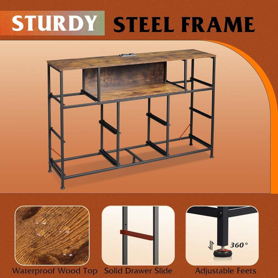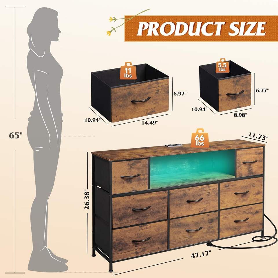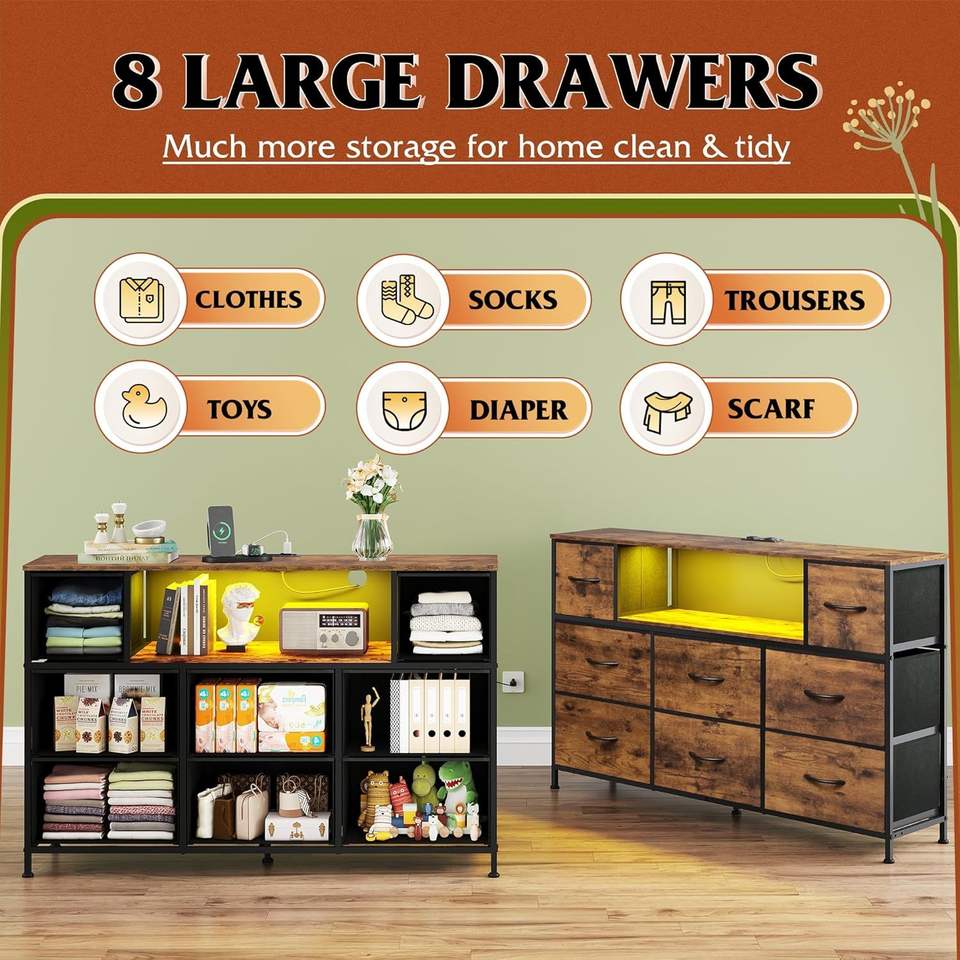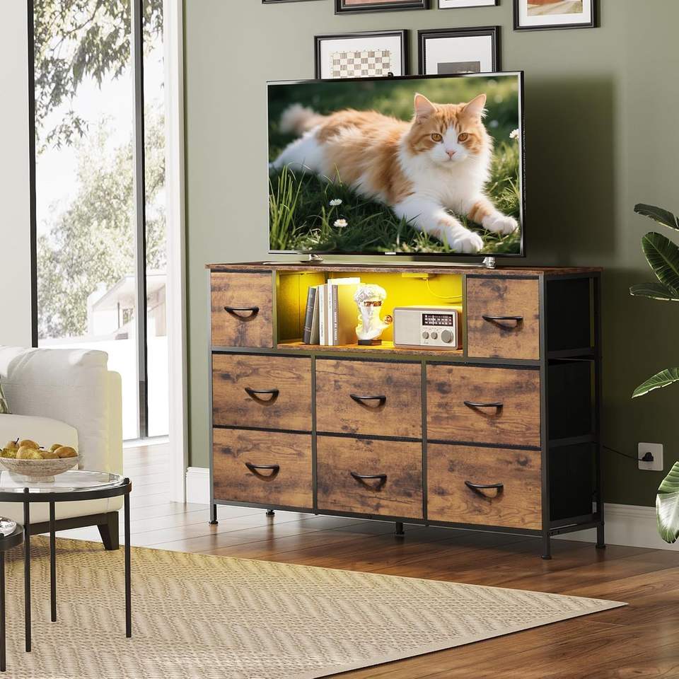 Mobile TV con 8 Cassetti per TV da 45-55 Pollici, Centro di Intrattenimento con Luci LED e Stazione di Ricarica, Design Elegante