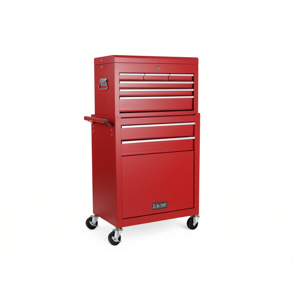 Carrello Portautensili 2-in-1 con 8 Cassetti, Ruote Bloccabili, Piano Superiore Rimovibile, per Uso in Garage