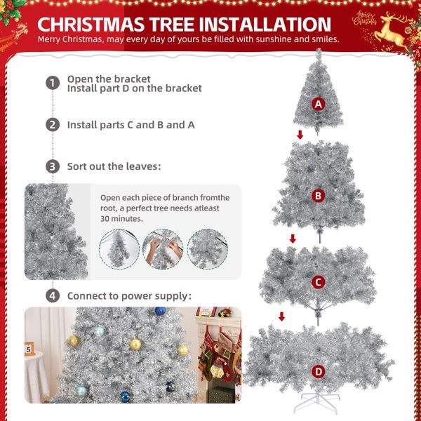 8 FT Unlit incernierato albero di pino di natale con rami 1350 punte argento artificiale albero con robusto supporto in metallo