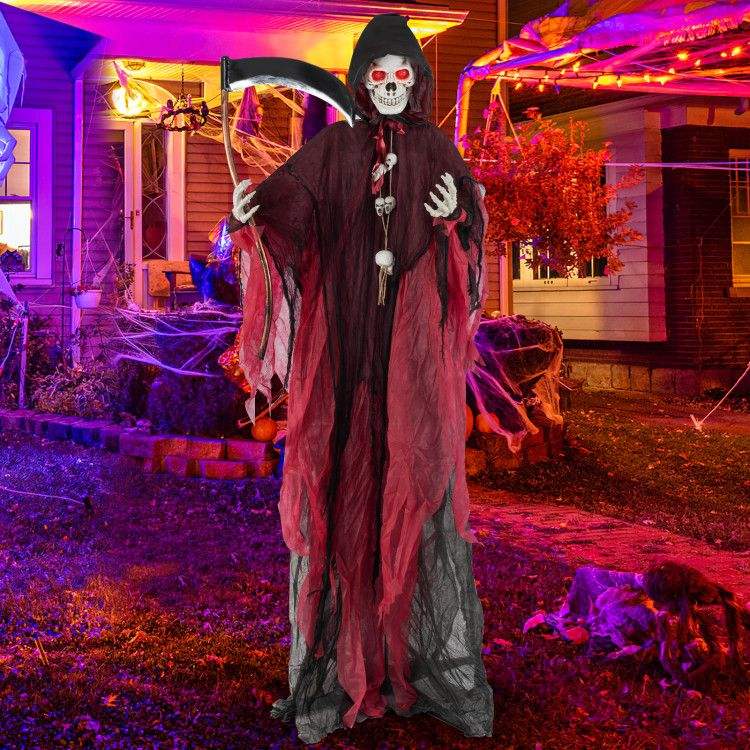 8 Feet Halloween Grim Reaper Stand Terrifying Sounds and Lighted Eyes Halloween Decoration