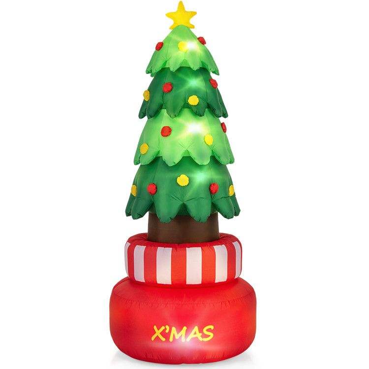 Albero di Natale Gonfiabile Rotante da 2,4 Metri per Esterni, Decorazione Natalizia da Giardino con Luci LED Integrate e Sacche d'Acqua