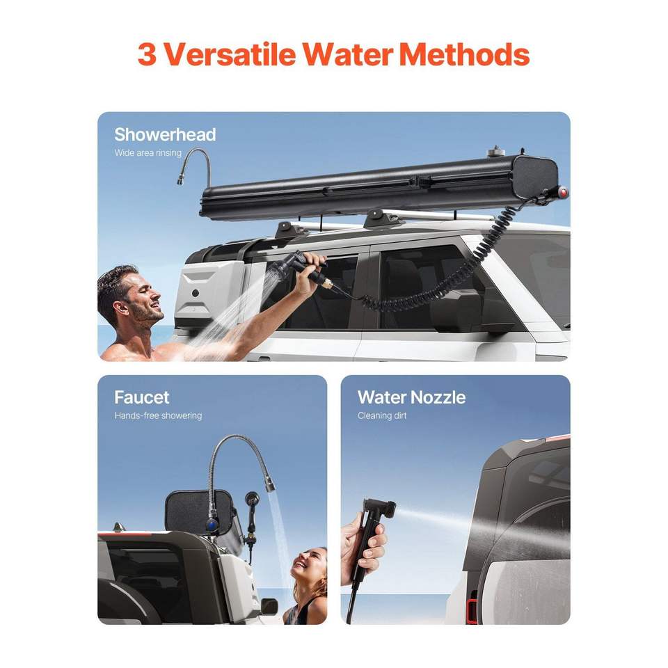 Serbatoio d'Acqua Portatile da 8 Galloni con Pannello Antispruzzo e Sistema di Montaggio su Portapacchi per Auto