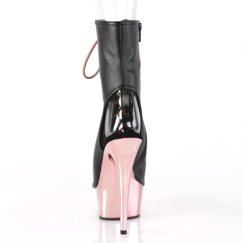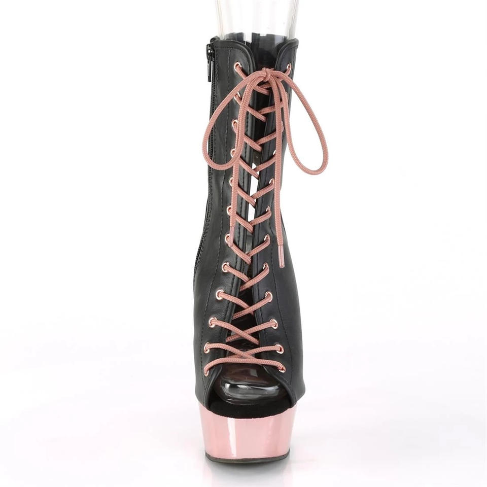 8" Heel Rose Gold Chrome Platform Matte Black Ankle Boots Women Sexy Nightclub Lace-up High Platform Stripper Heel Stilettos