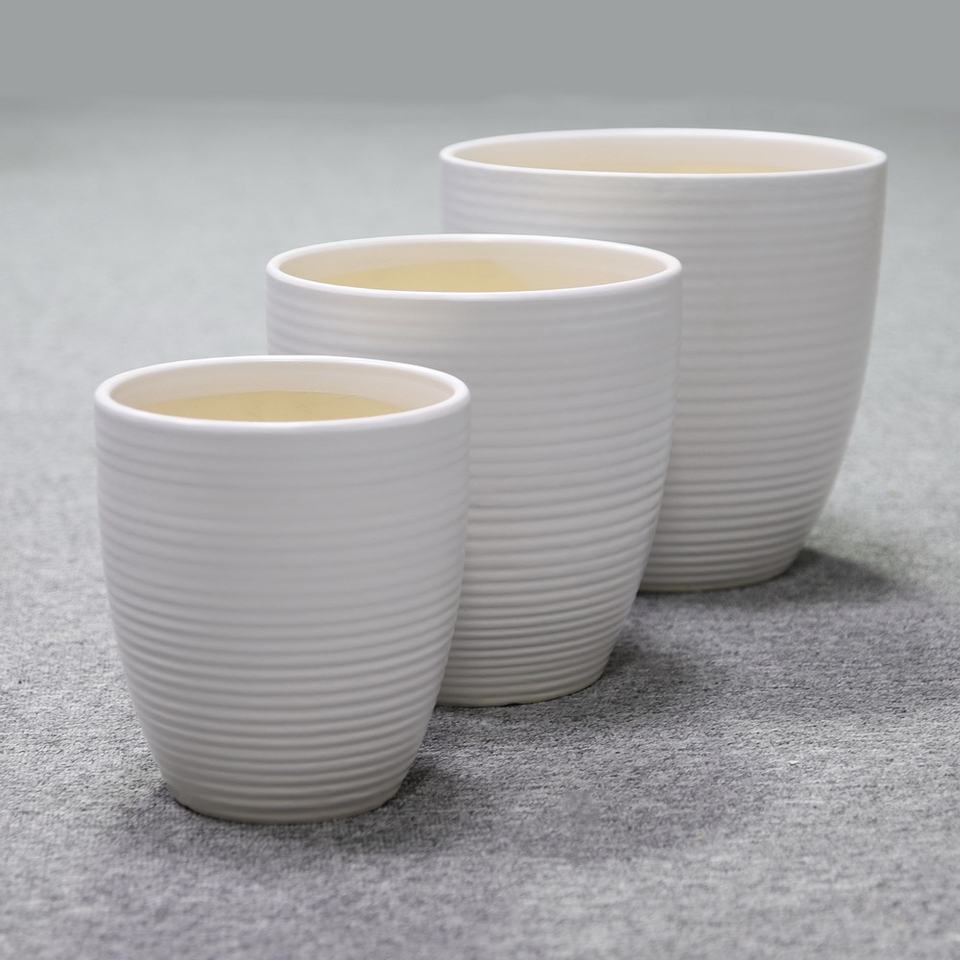 Set di 3 Vasi in Ceramica Bianca Opaca Stile Cinese da 8, 10 e 12 Pollici con Foro di Drenaggio per Piante Succulente
