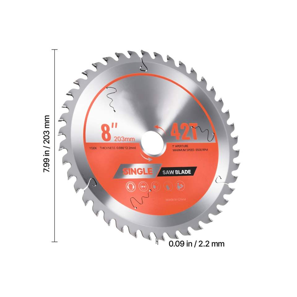 Lama per Sega Circolare da 8 Pollici con 42 Denti Affilati in Lega, Attacco da 1 Pollice, Finitura Fine per Taglio del Legno