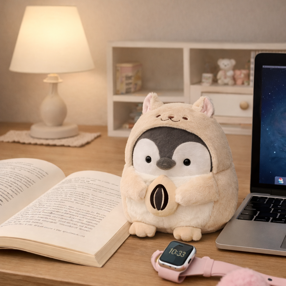 Peluche Pinguino Rosa da 8 Pollici con Cuscino per Divano e Cuscino per Bambini con Semi di Girasole, Imbottito in Cotone PP, Unisex per Bambini dai 2 ai 4 Anni