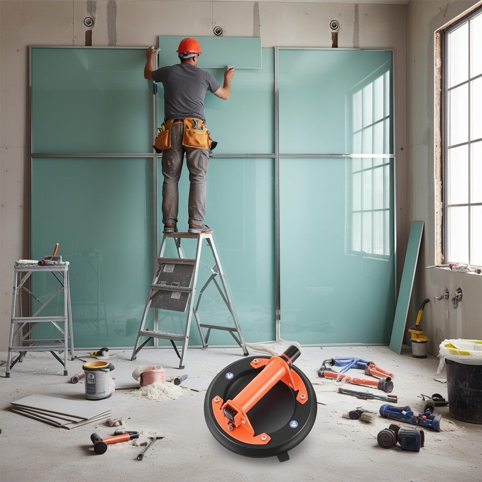 Sollevatore a ventosa per vetro da 8 pollici, capacità massima 275 libbre, manico in metallo, ventosa per piastrelle, per cartongesso e finestre