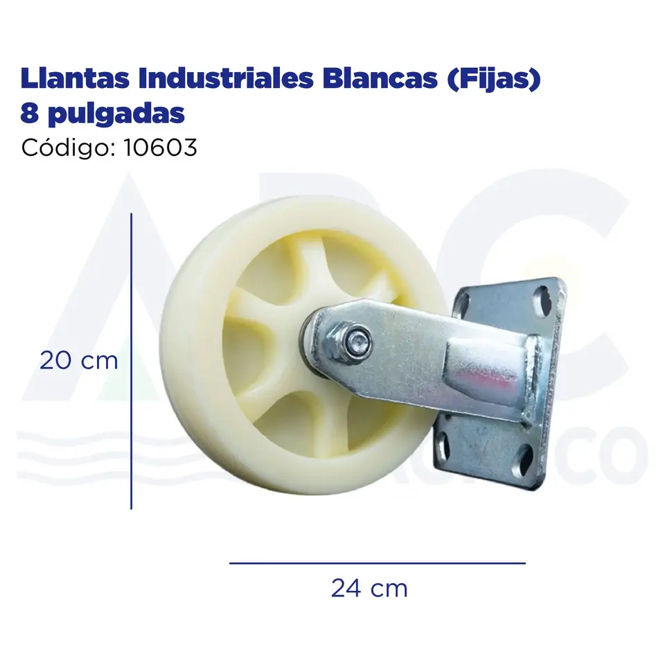 Ruote rotanti girevoli bianche da 8 pollici industriali Caster fisse poliuretano Nylon acciaio gomma materiali plastici per l'edilizia