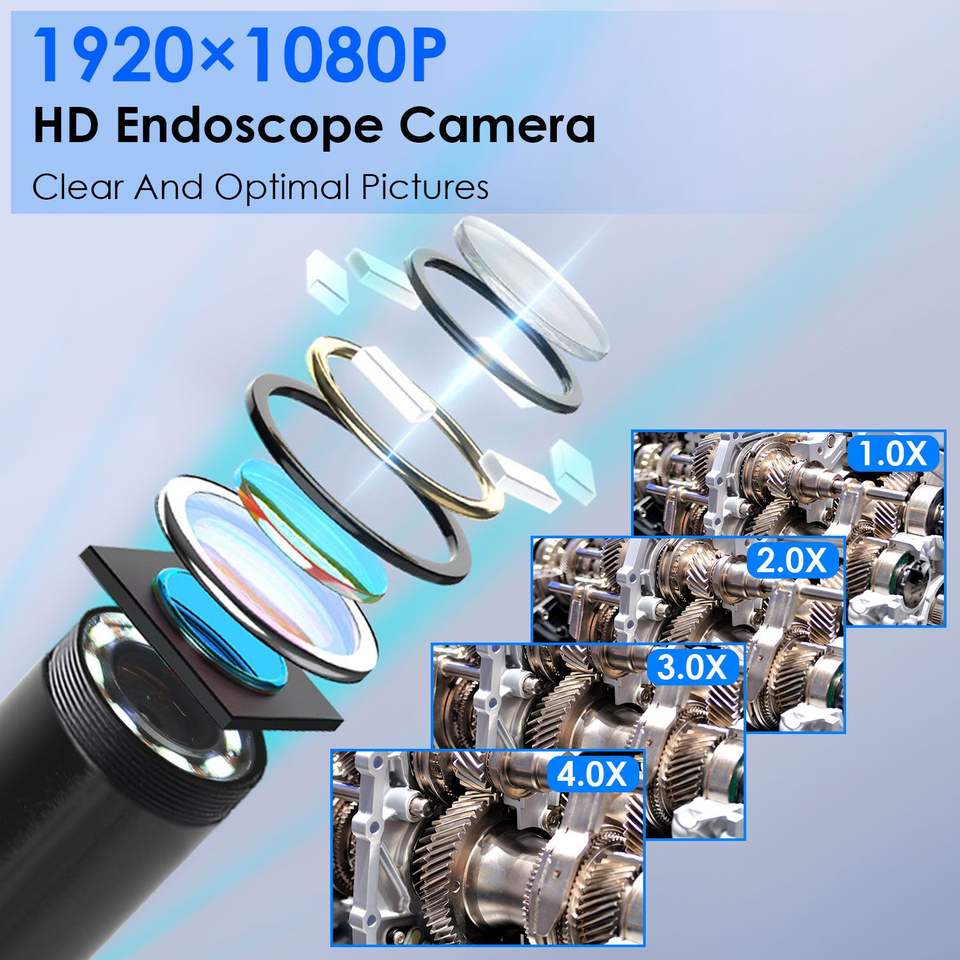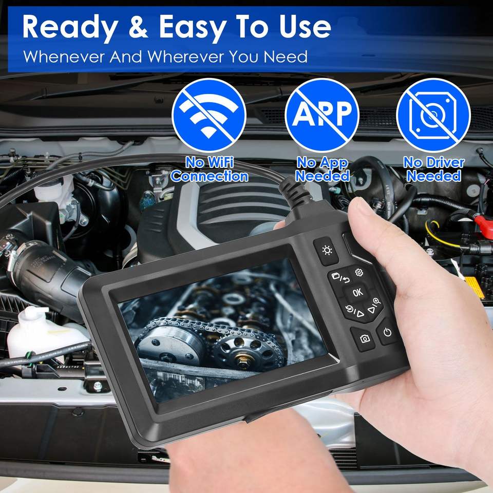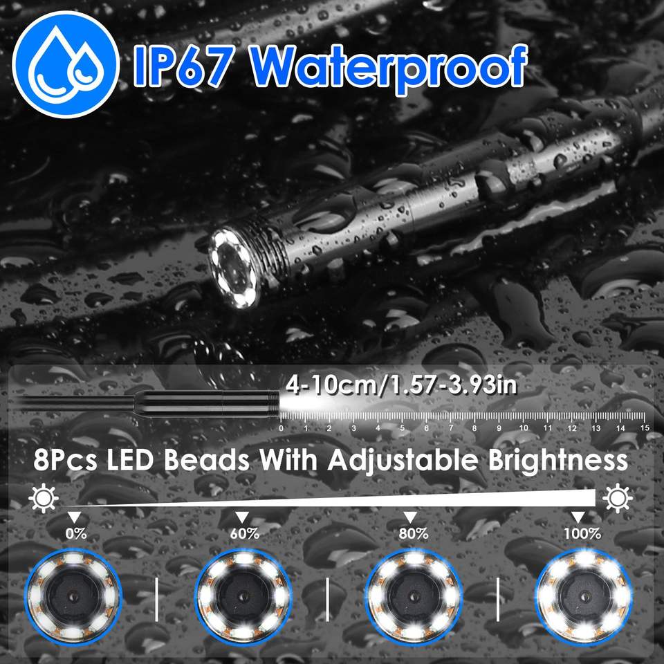Telecamera Endoscopica 1080P con 8 LED, Schermo Colorato da 4,3 Pollici, Cavo Semi-Rigido da 5 Metri, Impermeabile IP67, Strumento per Ispezione Auto