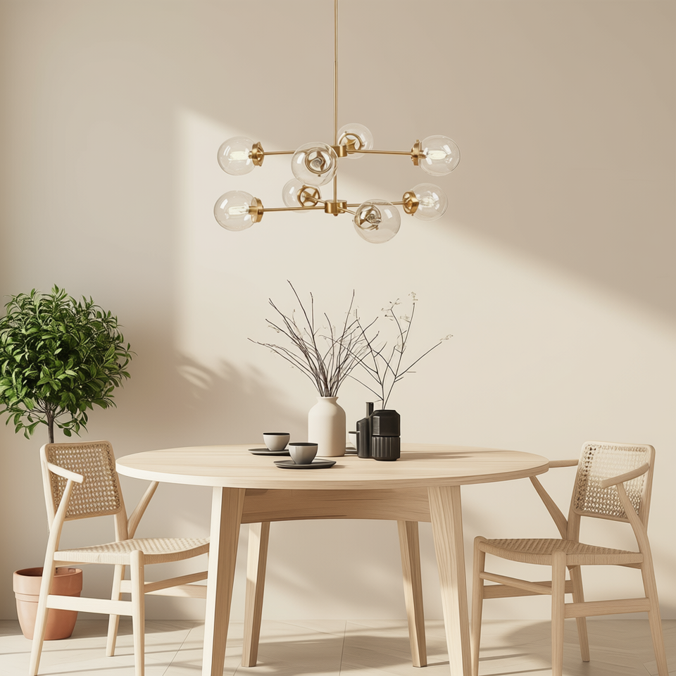 8 Light Metal Chandelier Globe Bulbs Pendant Light Gold Finish E27 LED Indoor Dining Room Lighting Adjustable Height