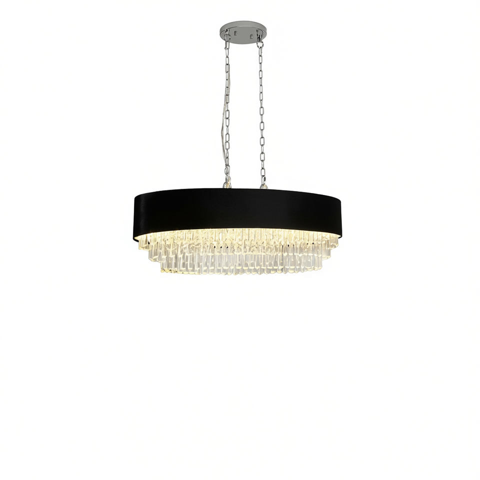 Lampadario Moderno in Cristallo con Paralume Nero in Velluto Imitazione, Base G9, Altezza Regolabile, Forma a Tamburo Rotondo, Illuminazione LED per Sala da Pranzo