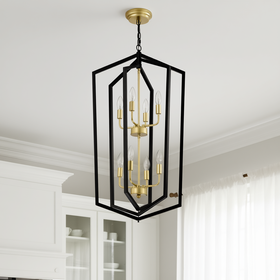 Lampadario a sospensione moderno a 8 luci in metallo nero, stile rustico, con portalampade E12, per cucina e ingresso