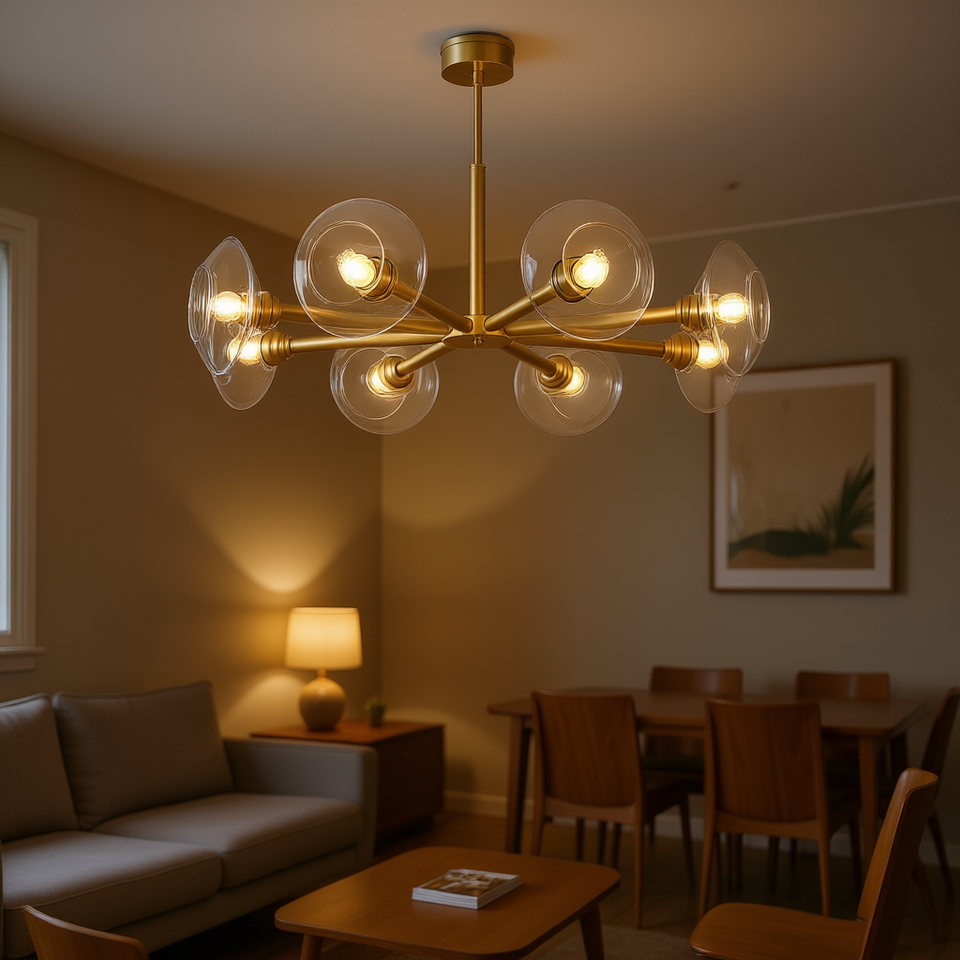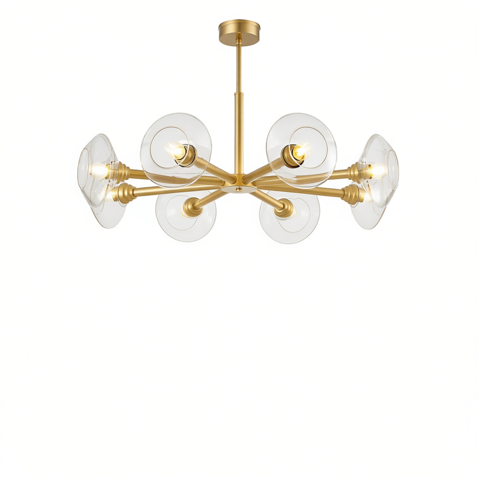 Lampadario a Sospensione Sputnik a 8 Luci in Oro, 36 Pollici, con Paralumi in Vetro Trasparente, per Sala da Pranzo e Soggiorno