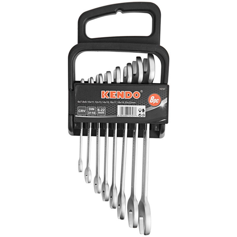 Set di 8 Chiavi a Forchetta con Supporto, Misure 6-7-20-22 mm