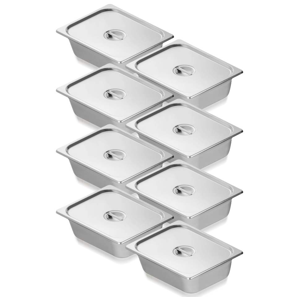 Set da 8 teglie gastronorm 1/2 in acciaio inox anti-inceppamento, spessore 0,8 mm, per uso commerciale e alberghiero, profondità 4 pollici, con coperchio, per cucina professionale