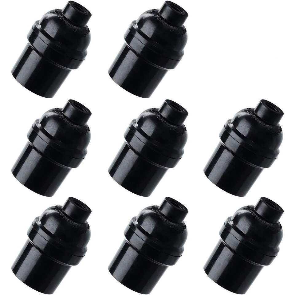 Set di 8 Portalampade Neri Stile Edison Retrò, Attacco E26/E27, Potenza Massima 25W, Base per Lampade in Plastica con Innesto a Vite Standard