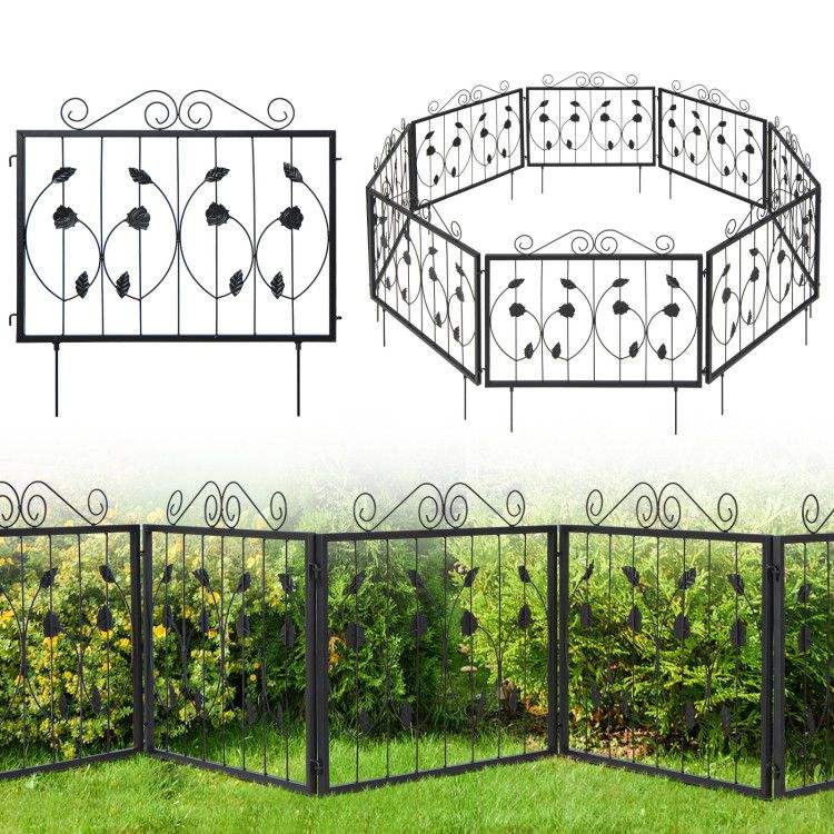 8 Pack Decorative Rustproof Metal Garden Fence 23.5''(H) X 15.3ft (L) Animal Barrier Trellis & Gates
