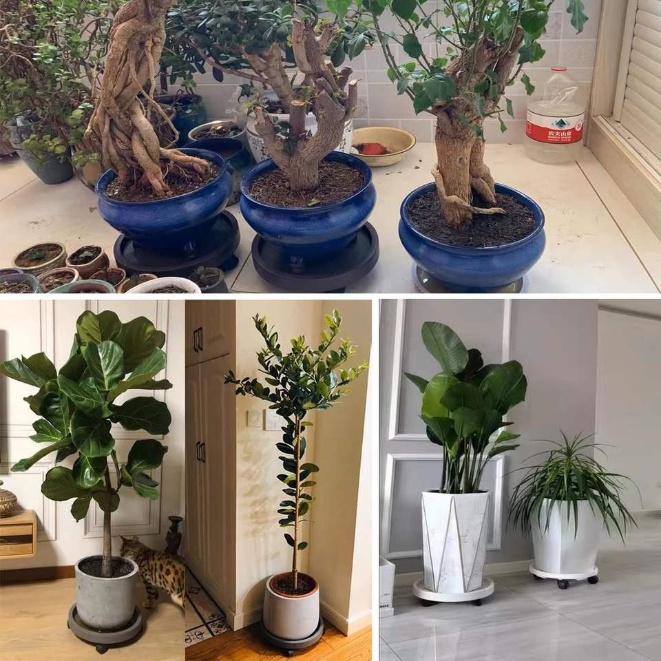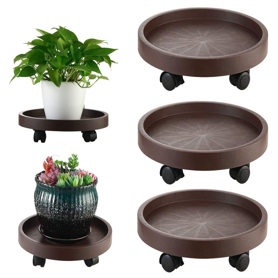 Set di 8 Supporti per Piante con Ruote da 12,2 Pollici, per Interni ed Esterni, con Rotelle Bloccabili, Vassoi per Vasi