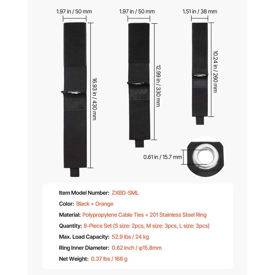 Set da 8 Cinghie Resistenti per Cavi di Prolunga, Organizzatore per Garage, Supporto per Cavi, Fascette per Cavi da 52 Pollici