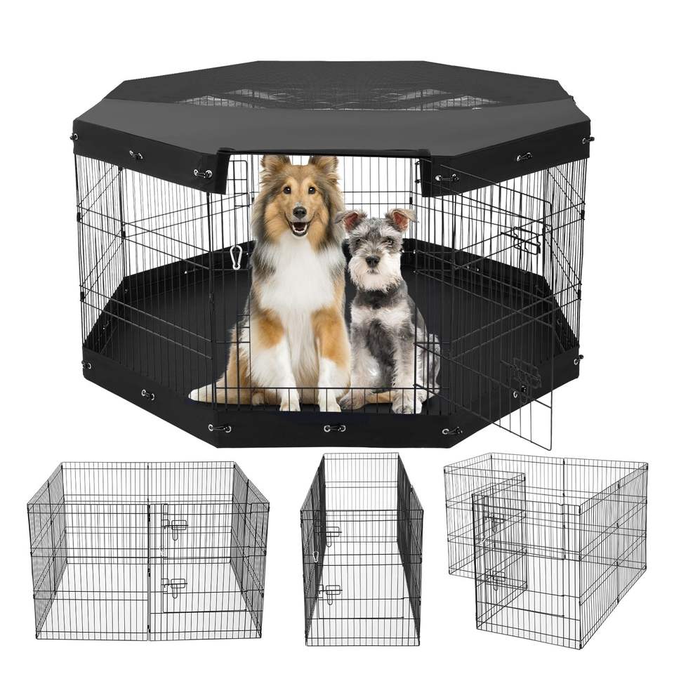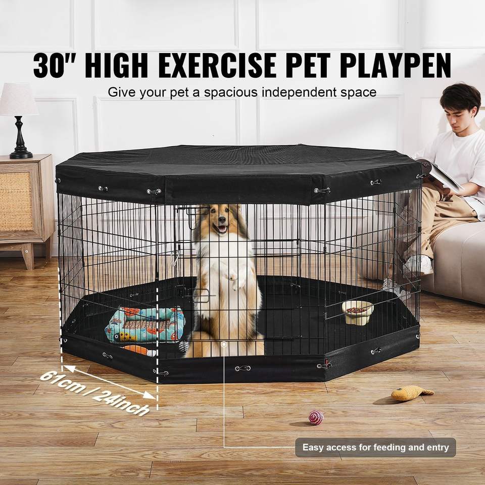 Recinto per Cani Pieghevole in Metallo 8 Pezzi 30"H X 24"W con Tappetino Inferiore, Box per Esercizio per Animali Domestici da Interno/Esterno con Porta