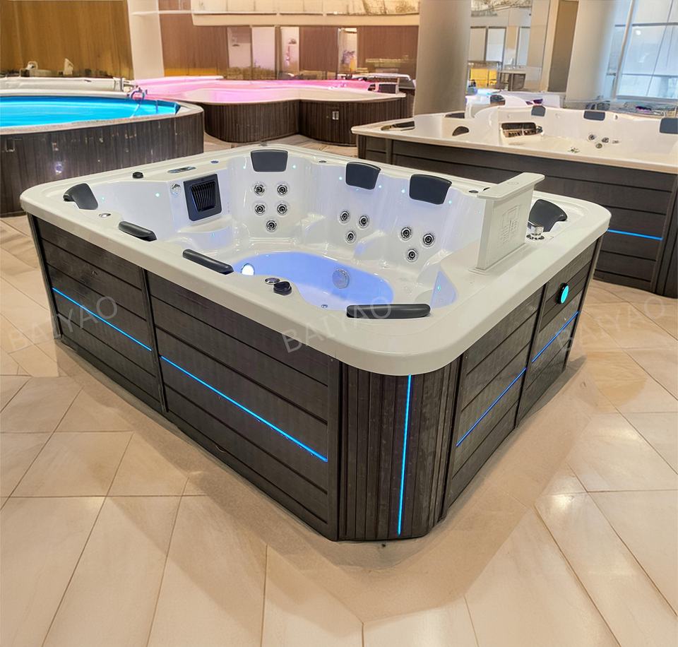 Vasca Idromassaggio Spa da Esterno per 8 Persone Jacuzzi Colore Bianco con Sistema Balboa Approvata CE per Hotel