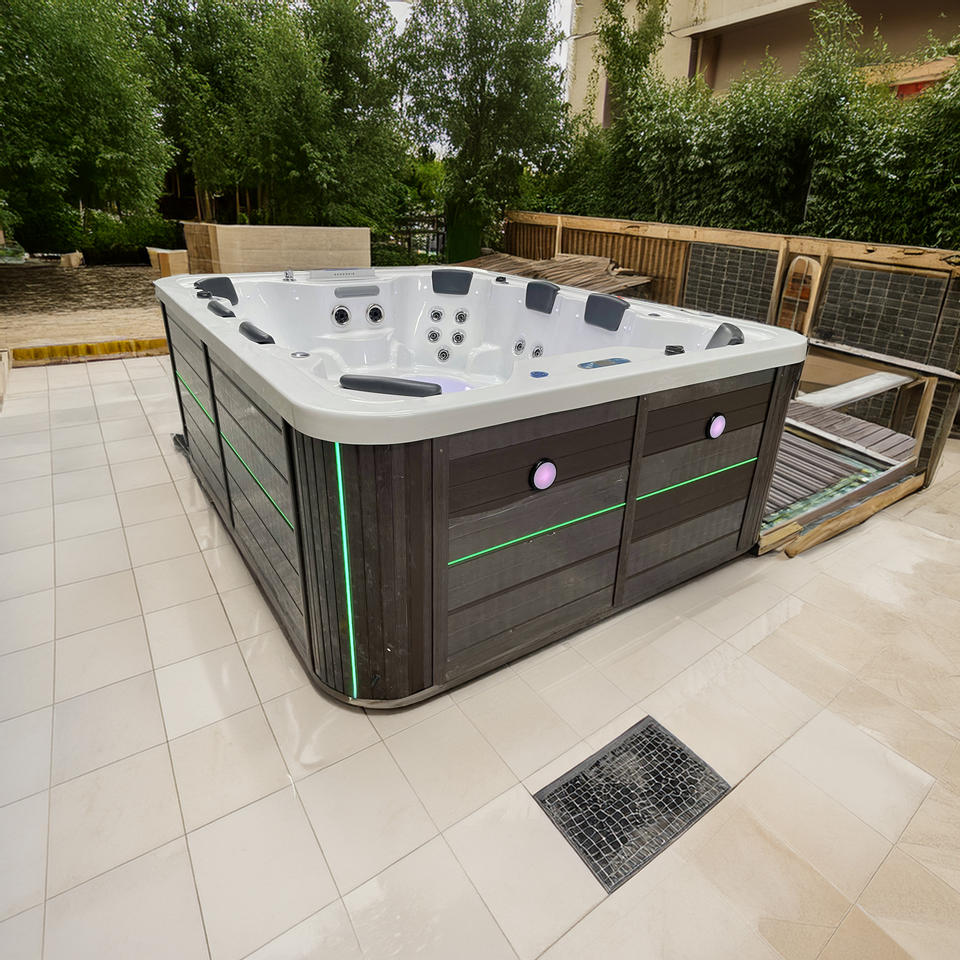 Installazione a piedistallo: Progettato per l'installazione a piedistallo, questo spa offre flessibilità nella posizione e può essere facilmente installato in vari ambienti esterni.