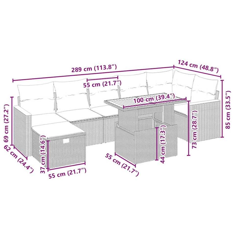 Set Divano da Giardino in Rattan PE Beige a 8 Pezzi per Esterni