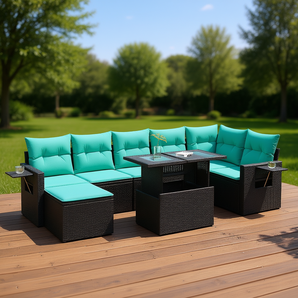Set di divani da giardino in polyrattan nero da 8 pezzi con cuscini, mobili da esterno