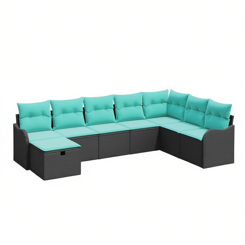 Set Divano da Giardino in Polyrattan Nero a 8 Pezzi con Cuscini, Arredamento da Esterno