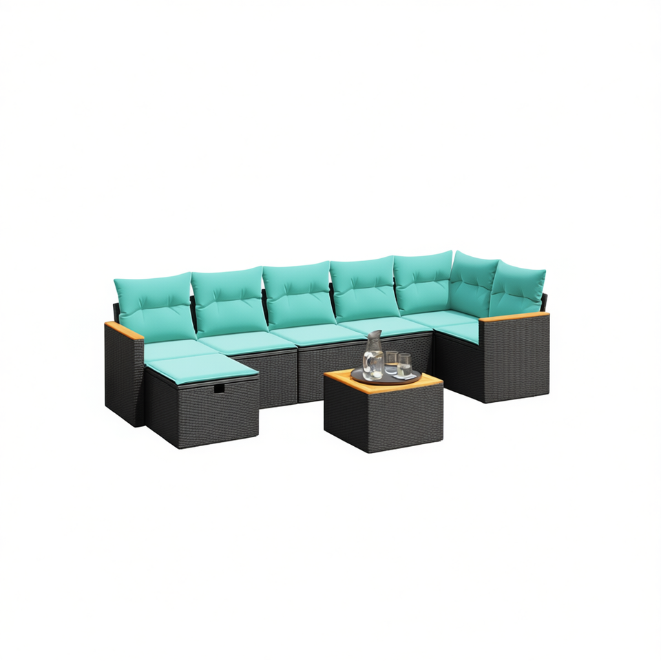 Set Divano da Esterno in Polyrattan Nero con Cuscini, 8 Posti, Design Contemporaneo, Stile Moderno