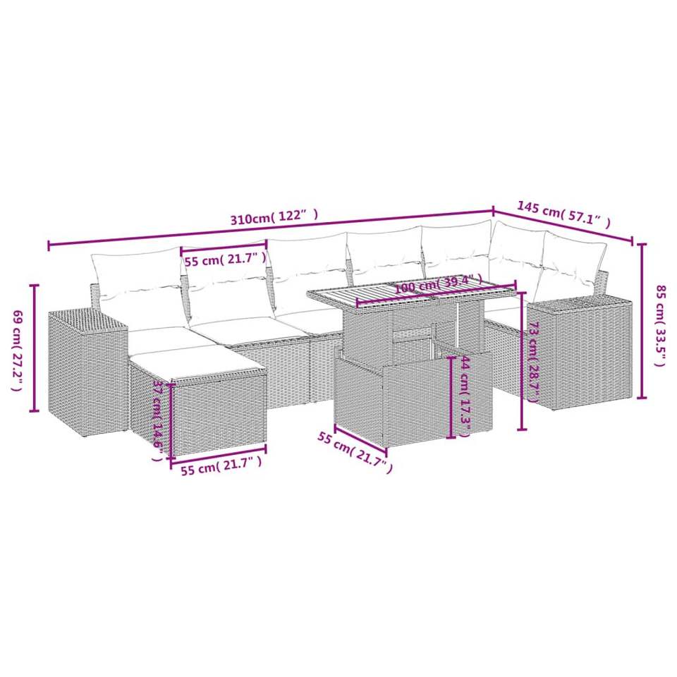 8-Piece Black Poly Rattan Patio Sofa Set with Cushions Stylish Outdoor Furniture