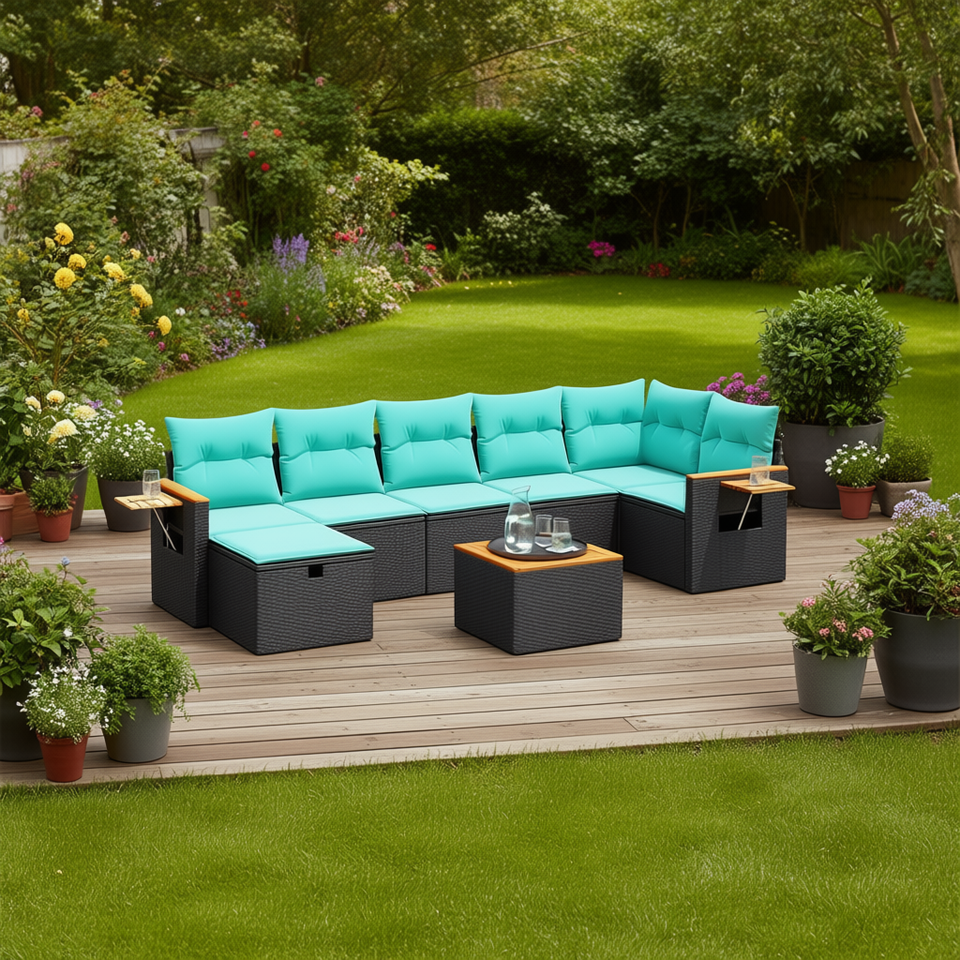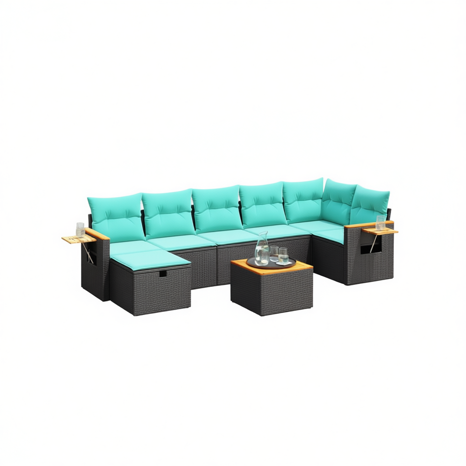 Set di divani da giardino in polyrattan nero da 8 pezzi con cuscini, mobili da giardino, posti a sedere all'aperto