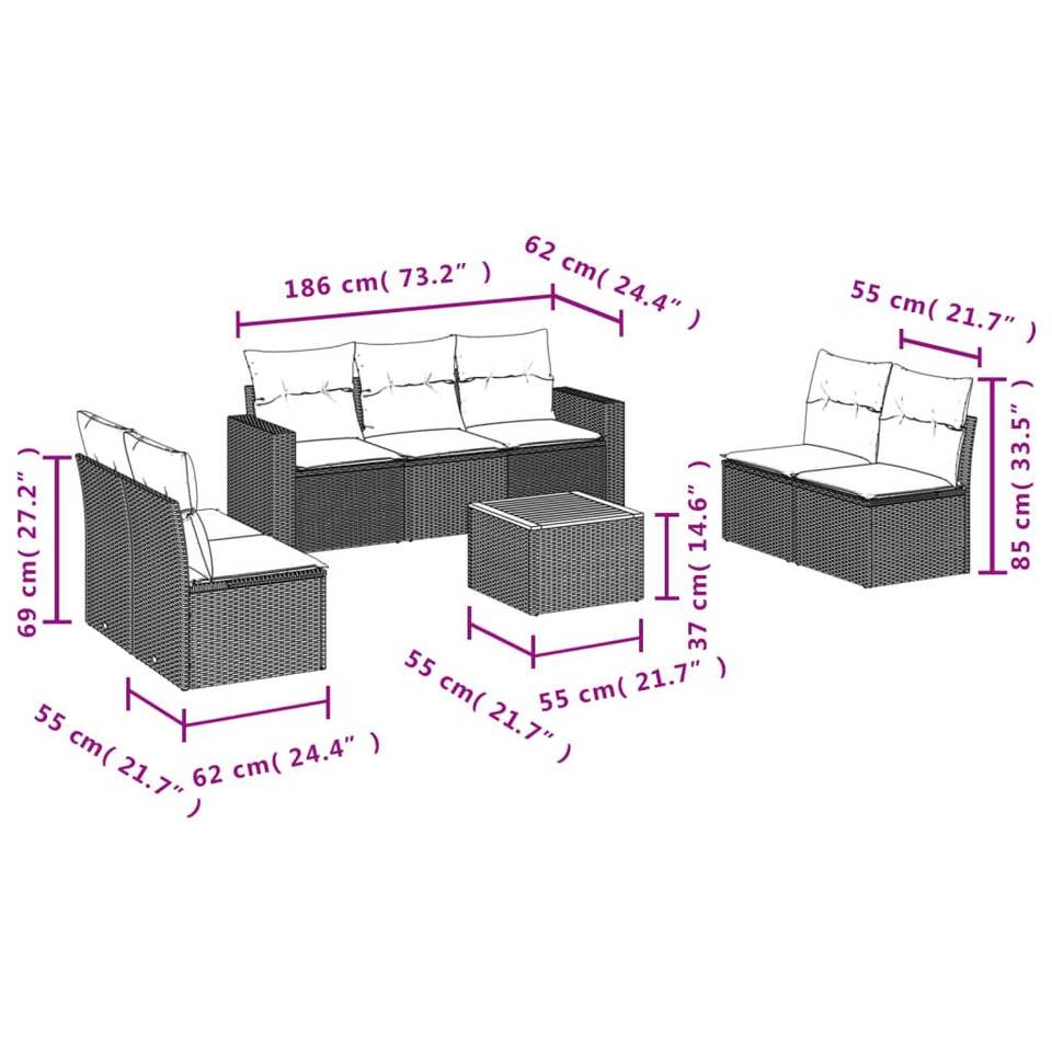 8-Piece Black Poly Rattan Patio Sofa Set with Cushions Stylish Outdoor Furniture