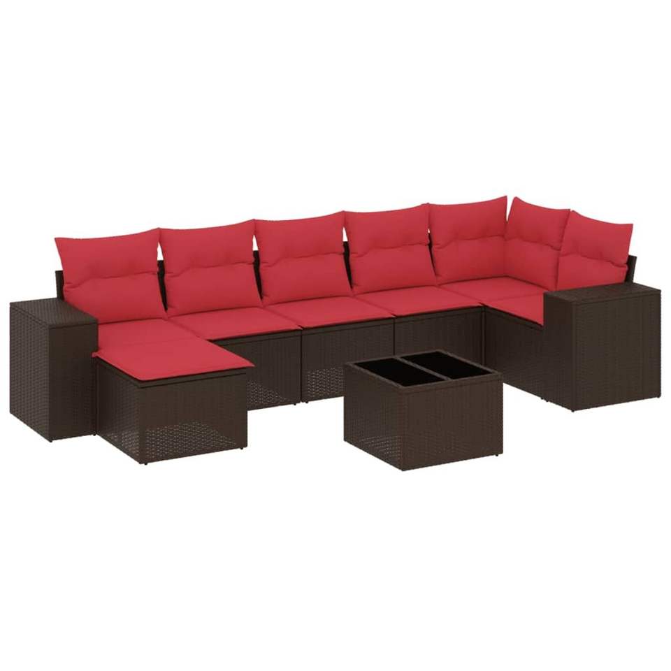 8-Piece Brown Poly Rattan Garden Sofa Set with Cushions Patio Furniture