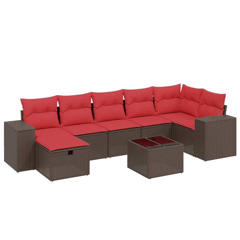 Set divano da giardino in Poly Rattan marrone 8 pezzi con cuscini eleganti mobili da esterno
