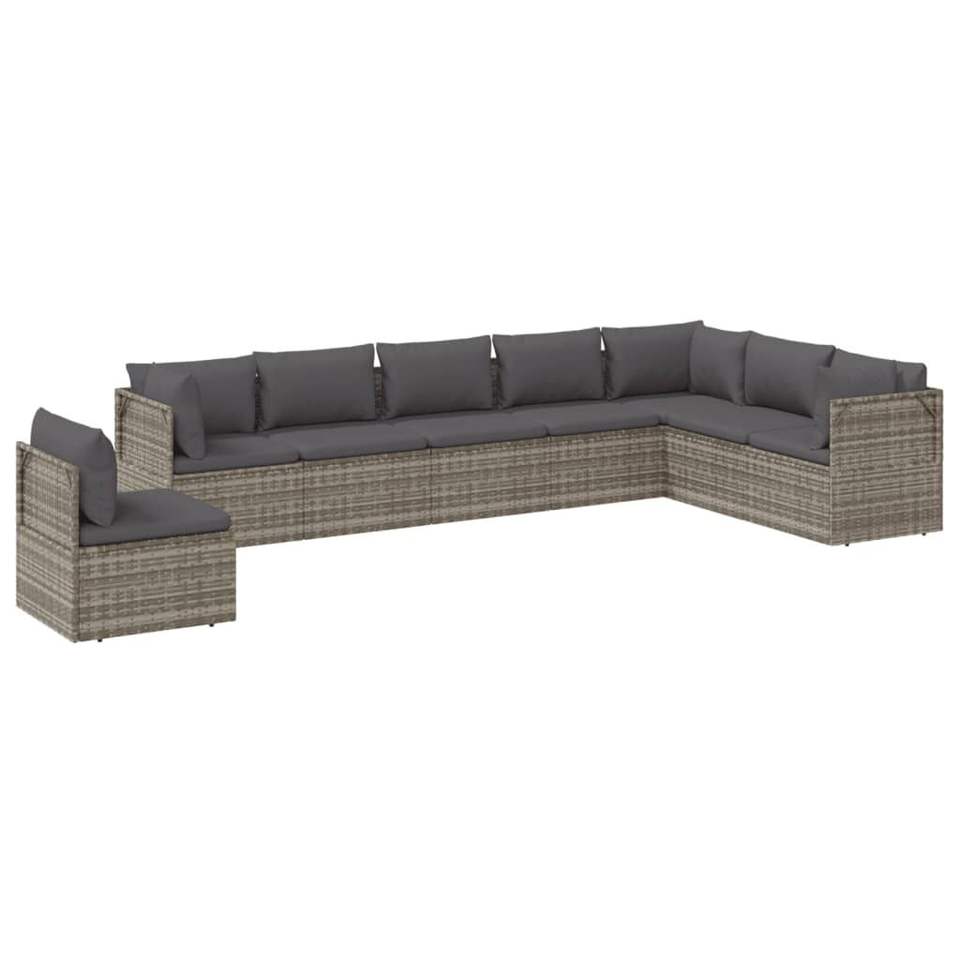Set da salotto con Patio in Poly Rattan grigio 8 pezzi con cuscini Set da giardino