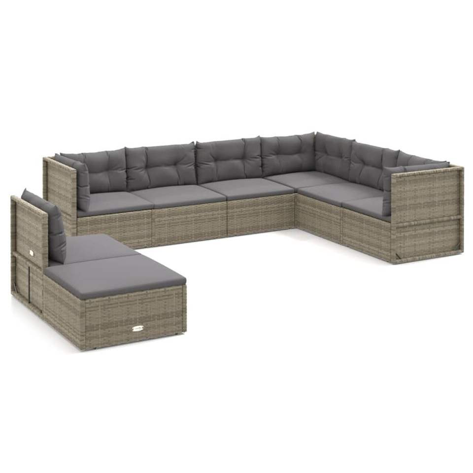 Set da salotto in Poly Rattan grigio 8 pezzi con cuscini Set da giardino
